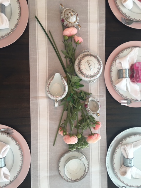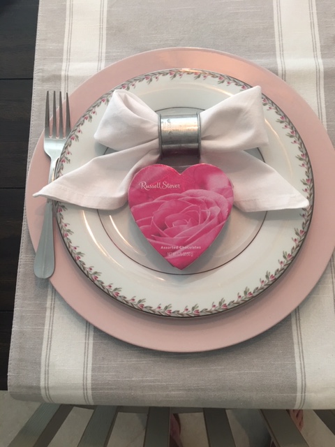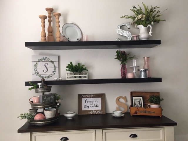 Among all the other changes and life events, we moved about three years ago. Not to a new town, just a new house. With all the "babies" grown and moved out, I guess it was time to downsize. In my dining room, I have these floating shelves above my sideboard, super cute. I love to decorate them with my favorite things. After having so much fun decorating them for Christmas, I decided I would do a subtle little "nod" to Valentines - I put out my paternal grandmother's formal china with its little pink rosebuds, got a few pink things from Hobby Lobby and Target (and even had a Valentines dinner for some friends with pink chargers!). Fun! (oh how Mama Annie would love it too, seeing her dishes so loved!)